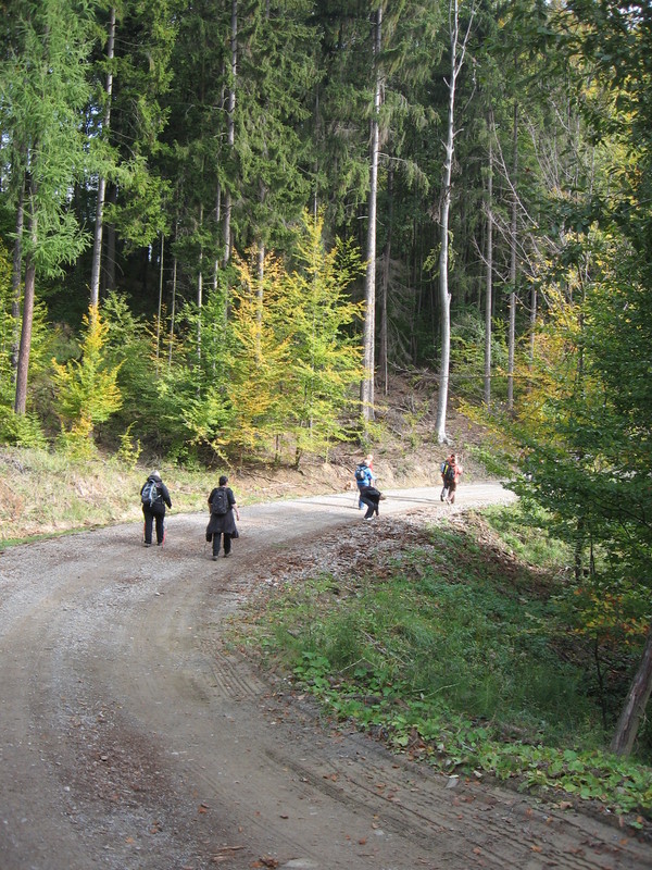 Cca 13 km dlohá cesta nás vedla krásným, vzrostlým, vesměs bukovým lesem, kde si přišly na své i houbařky, které nacházely václavky, ryzce, pýchavky, bedly, klouzky, ale i suchohřiby a praváky. Prohlédli jsme si zříceninu gotického hradu Cimburk nedaleko Koryčan, výchozího místa naší cesty, procházeli jsme kolem studánek, zastavili se na Hradišti svatého Klimenta, "domácími" zvané Klimentek a pak se spustili dolů k Osvětimanské přehradě. Z Osvětiman, cíle naší cesty, jsme se vrátili autobusem do Kyjova a odtud vlakem zpět do Brna, kam jsme dojeli před šestou hodinou, již za tmy.