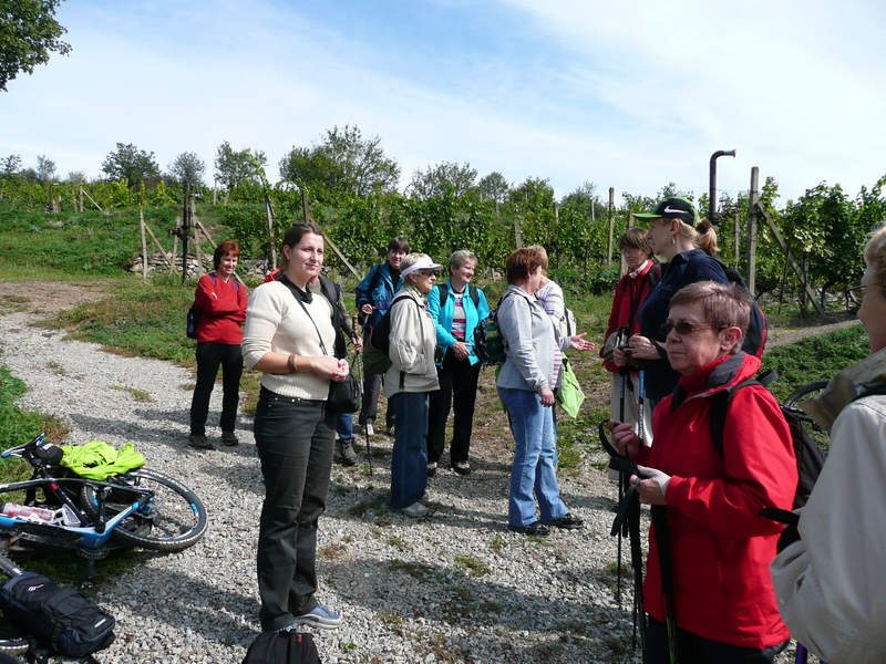 Procházkou, cca 13 km dlouhou, jsme objevovaly krásy tohoto národního parku: lesy, které se zatím nezahalily do barev podzimu, nádherné vyhlídky, meandry řeky Dyje, visutý most, zbořeniska po mlýnech, kamenná pole, nádhernou ještěrku a další. Neodolaly jsme, již za slunečného počasí, ani ochutnávce vín ve stánku u jedné z nejstarších vinic v Evropě zvané Šobes.